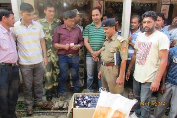 Sonamura, Nov 14 (TIWN): In another successful raid led by the SDM Sonamura, Subhasis Das, Bangladeshi Currency amounting Rs.1.00 lakh and 500 bottles of Phensedyl and brand Codeine Phosphate intoxicant syrups were recovered today from Boxanagar market.