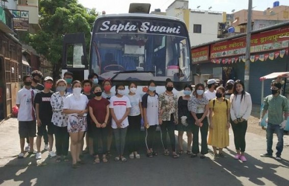 Sharing a picture of the people before started journey, CM tweeted, “Happy to share that the first bus carrying citizens of Tripura who were stranded in Pune, Maharashtra has started for Agartala. I wish them a safe return. We are trying our best to coordinate with other states and bring back our people to State”.