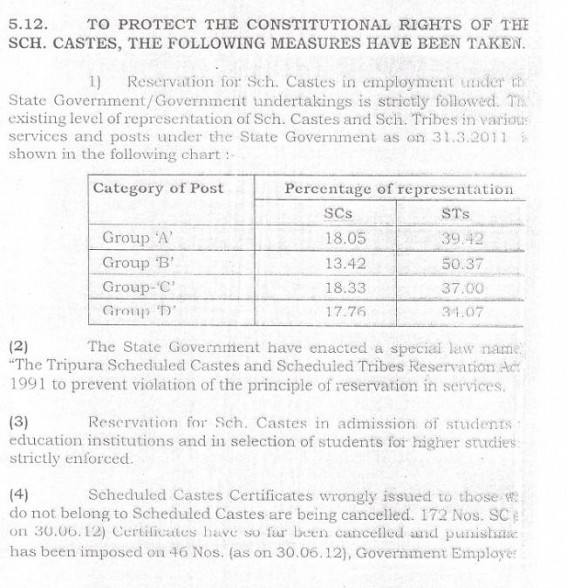AGARTALA, November 17 (TIWN): The maker of the Constitution of India Dr. B.R. Ambedkar had drafted the reservation category for the minorities for 10 years. So that, in the perspective of socio- economic condition, the minorities can lead the life as such general ones. At the same time, Dr. Ambedkar had also warned that if this process lasts long, then huge amount of black cloud will overcast the whole society. Proving the remark absolutely right, the political parties were playing a dirty politics in the name of reservation. In addition to this, in this sphere, Tripura's CPIM Government is ranking in the to topmost position. Thumbing the nail to Constitution, CPIM Government had created discrimination between general class and reserved category by creating upto 80% reservation for SC/ST and a mere 20% for general in promotions of Govt Depts . But, surprisingly the latest action of Govt has become another blunder which is similar to disobeying the instruction of High Court.