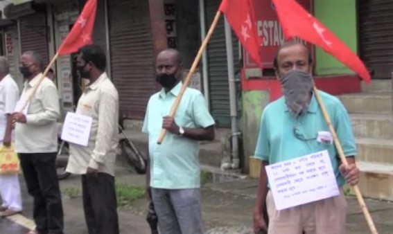 AGARTALA, June 8 (TIWN): Tafashili Jati Samannoy Samiti (SC cell of CPI-M) has staged protest over ongoing crisis situations which are being faced by the working class people.