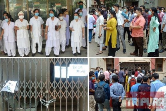 The agitators slammed the State Govt asking, what is the meaning of keeping a Govt which can’t pay interim Doctors their limited pays ? Ironically, today is National Doctor's Day in India when Tripura's Doctors are suffering in crisis but Tripura Govt has assured about a 'Model State' by next few months.