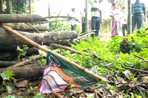 AGARTALA, July 24 (TIWN): Tension has erupted once again among BJP and IPFT at Nagichara's Kalidash Para after IPFT allegedly damaged BJP’s flags at there. However, BJP has blamed IPFT and CPI-M both.