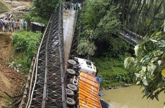 AGARTALA, July 24 (TIWN): Lack of maintenance is not only causing highways’ damaged conditions, but also risking lives of public in Tripura. In such an incident a steel bridge was collapsed in state, although the driver of heavy loaded truck has been blamed to drive his truck on it amid restrictions.