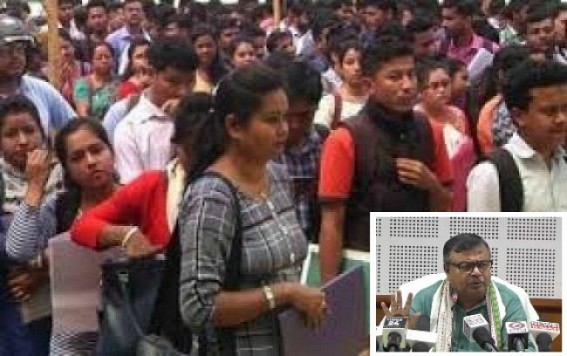 At the very beginning of the BJP-IPFT Govt in state, Finance Minister Jishnu Debbarma claimed that Tripura's employment is massive than the need in compare to other states and from then, job-recruitments have been downed in Govt Depts. But before coming in power, BJP promised to give 50,000 Govt jobs in first 1-year.
