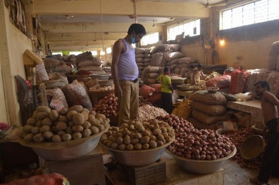 AGARTALA, Oct 30 (TIWN): Onion Prices skyrocketed to Rs. 70 to Rs. 100 in Tripura, Potato Prices at Rs. 60 whereas the wholesale market members alleged about 'Illegal Charging' by local markets. Expected Onion Price should be Rs. 63, Potato Rs. 44. With massive price hikes, onion prices have hiked to Rs. 70 to Rs 100 in some places of Tripura whereas potato prices are at Rs. 60 now. This has been cutting public pocket when commodity prices are at rise in all spheres. Whole sellers said that Govt must control the price because the normal market's sellers can't take more than Rs. 5 than the whole sale rates from the customers, but they are doing it illegally. Today, if whole sale rate of onion is only Rs. 58, how the shop-keepers are charging Rs. 80 and sometimes Rs. 100 in various places ?, asked a whole-seller.
