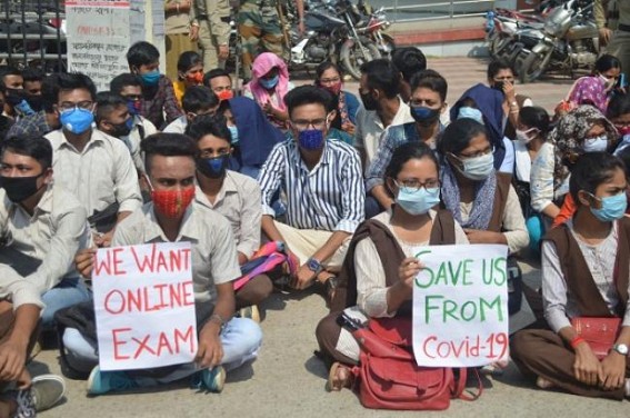 AGARTALA, Nov 5 (TIWN): Tripura D.El.Ed. students under DIET-SCERT have continued their protests in demand of "Online Examinations" like B.Ed students. This is fourth time that the students have knocked the Education Office but no solution has come out yet. The students have demanded either cancellation of others online examinations or to conduct their online examinations too. Under Education Minister Ratanlal Nath, there is no static decision under the Dept and the decisions specially in COVID situation are constantly changing which has resulted into two types examinations stirring protests by offline mode bound students. In protest, the the D.El.Ed. students today have gheraoed the Education Office, seeking online examinations. The students believe, if offline examinations are being taken then there will be huge difference between the other students, causing automatically huge gaps of numbers between groups of students who will be candidates for teaching profession in coming days.