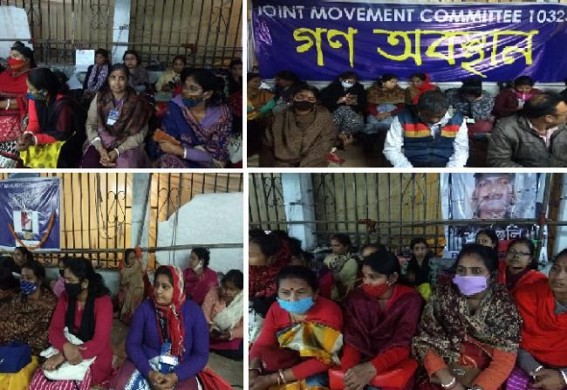 AGARTALA, Jan 15 (TIWN): On the 40th day of JMC of the 10323 teachers has said that the teachers to wait till tomorrow as the Education Dept had sought time till 16th January to reply to their all legal queries. Talking to media, JMC member Kamal Dey said that as the Education Secretary promised the teachers to reply by 16th, so they will wait till then but if tomorrow no satisfactory answer can be given by the Education Dept, then the protest will be escalated like it was never before. The Education Dept which said to give a written letter to the 10323 teachers JMC before 16th January, however, has not replied to them. Addressing from the agitation spot, JMC member Mintu Debbarma raised various legal queries which JMC raised earlier many times already. He asked, why the Govt is silent on those points ? Why it is not breaking its silence over 10323 teachers questions. Tomorrow however, the JMC is scheduled to meet the Education Secretary whom they met on January 13 and submitted a memorandum with such legal queries as - 1) Where are the 10323 teachers' names in petition and in verdict ? 2) Why no termination letter was given etc.