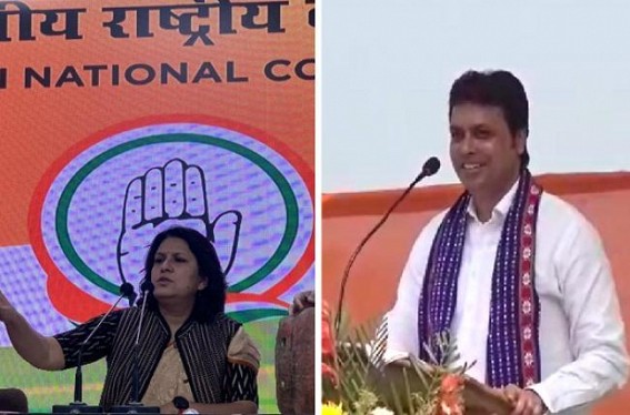 AGARTALA / NEW DELHI, Feb 16 (TIWN): National Congress has given statement over ongoing controversy centering Tripura Chief Minister Biplab Deb's statement about "Amit Shah's plan to Govern Nepal and Sri Lanka '' after establishing BJP party there. Addressing in a press meet National Congress leader Supriya Shrinate said, "It has been noticed that Biplab Deb often talks ridiculous but this time, it's no more remained a joke. Biplab Deb has hurt the sentiment of India's Foreign policy and diplomacy. The Central Govt must force Biplab Deb for an unconditional apology for his remark against these neighboring countries and say sorry to the people of Nepal and Sri Lanka".