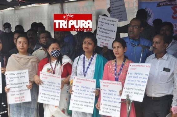 NEW DELHI, Feb 19 (TIWN): The United Forum of Bank Unions (UFBU), an umbrella body of nine unions, is observing strike from March 15 to protest against the proposed privatisation of two state-owned lenders. Along with the whole nation, protest was staged in Tripura also.