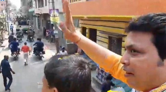AGARTALA, Feb 23 (TIWN): Tripura Chief Minister Biplab Deb's rally which did not get a name in the star campaigner list of West Bengal BJP led published today's programme schedule, was seen waving hand at empty roads of Habra in West Bengal.