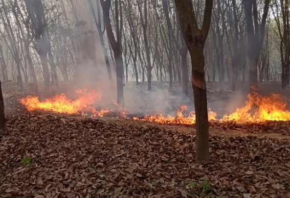 AGARTALA, Feb 26 (TIWN):Rubber plantations burned into ashes, the incident took place in Jharjharia area of Ranirkhamar Vill Panchayat under Amtali PS.