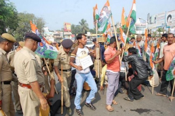 The INTTUC’s protest and road blockade today disrupted the movements of vehicle and public including office goers due to huge traffic jam in the capital city- Agartala. However, over 30 INTTUC protesters were arrested in this regard and later, they were released.
