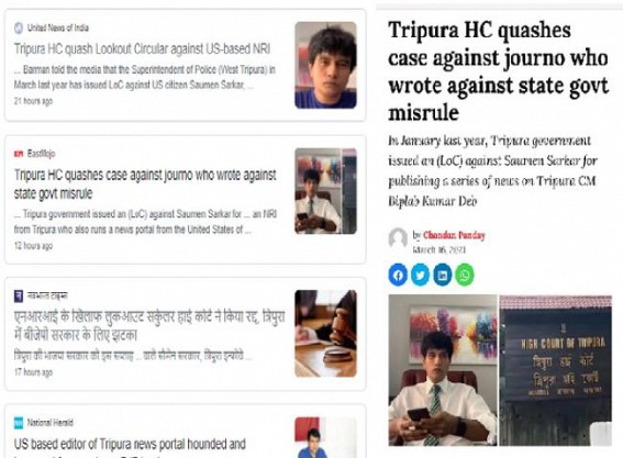 AGARTALA, March 17 (TIWN): Tripura Media world has experienced terrible attacks in last 3 years under Chief Minister Biplab Deb from shutting down of many media companies to threatening media in broad-day light by the Chief Minister himself, attacking media offices and beating up journalists physically, police terror to media persons. Earlier, except MEMEs and Gaffes, after Biplab Deb's open threat to media where he said "Won't forgive a Section of Media", the issue was published in National and International media and now once again Tripura is in national media after Tripura High Court's landmark verdict by quashing LoC against TIWN Editor and also cancelling Biplab Deb's evil plan of passport cancellation requisition. Various national / international media which have already covered like SOCIALNEWS.XYZ, East Mojo;', Times of Republic News, The Hawk, UNI, CanIndia, The Northeast Affairs etc.