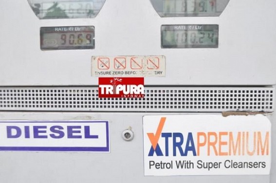 AGARTALA, June 12 (TIWN): Rajesh Mandal, a consumer at Durga Bari petrol pump told TIWN that he might sell off his bike as it is turning quite a matter of concern due to the losses he is facing in riding his bike to go for work. Today for the first time, petrol prices have hit Century in Agartala, erupting heavy public resentment. The offended persons expressed extreme frustrations due to such hikes. Diesel price is also not lagging much behind as it is Rs. 90.69 today. Moreover, there is no idea when the price may get down or where the price hike will stop as everyday fuel prices are increasing. Due to  heavy taxation on fuel, the price is going up amid international prices. Central taxes on petrol have doubled in the last seven years, while on diesel they increased almost eight fold. Yesterday, Tripura Congress had staged a massive protest in Agartala against fuel price hikes. The party demanded that State Govt should immediately reduce some taxes on fuel.