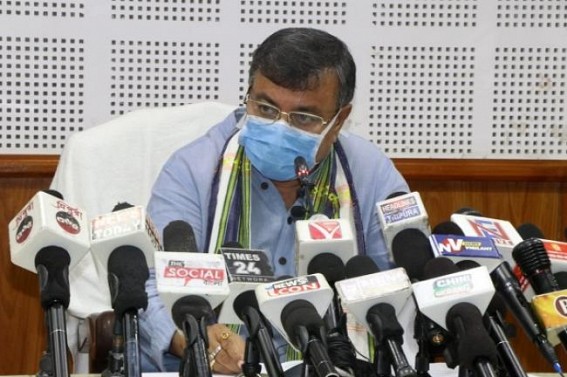 Addressing media at the Secretariat, Ratan Lal Nath said, "Total Covid tests have been done above 11 lakhs and among them the positive rate is about Rs. 61,000 and recovery is above 56,000. Total active case 4,715. In home quarantine total 4226 patients and in institutional quarantine 489 patients and total death is 639".
