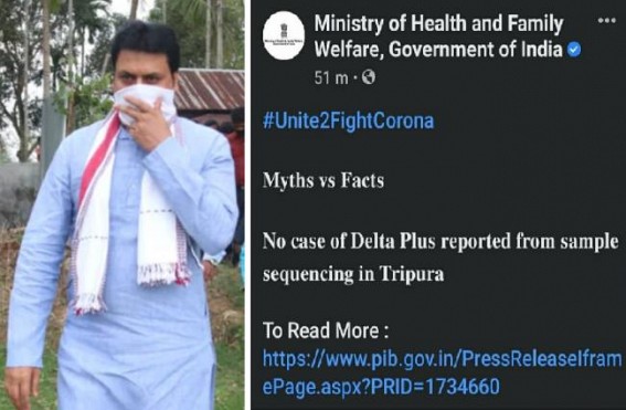 Central Govt clarified : "No case of Delta Plus reported from sample sequencing in Tripura The samples tested revealed cases of Delta Variant".
