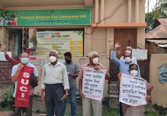 AGARTALA, Aug 4 (TIWN): SUCI has protested over price hike of CNG, Cooking Gas. After staging demonstration SUCI (C) leaders handed over memorandum to the TNGCL managing director over price of CNG at TNGCL office at Krishnanagar.