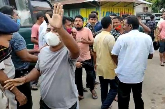 AGARTALA / KHOWAI, Aug 8 (TIWN): BJP made a mass gathering in Khowai police station with "Jai Sri Ram '' slogan and almost came in attack on the Trinamool activists.
