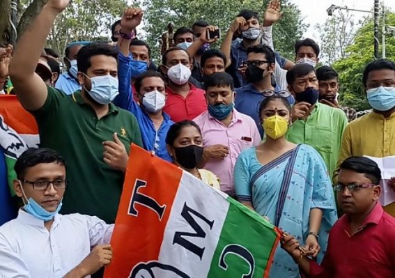 AGARTALA, Aug 17 (TIWN): Trinamool Congress Youth wing President Sayani Ghosh has alleged that BJP is interfering with the Hotel Polo Towers activities and using all means to prevent the Trinamool's staying in that hotel. She alleged, through email the Hotel authority was instructed today not to allow Trinamool members to organize any meeting / press meet in the hotel premise. In protest, Sayani Ghosh along with other Trinamool leaders organized a joining programme at Circuit House beside the Gandhi statue. Interacting with the media, Sayani Ghosh said, "It has been more than 2 hours that the power has been cut in the hotel but by doing such activities, the BJP can not stop us. There is no alternative to Mamata Banerjee in the whole country. People of Tripura have requested us not to leave the soil and so we have given them the assurance of forming Trinamool Govt in 2023". Today, 70 voters joined TMC in Circuit House.