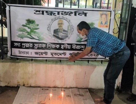 AGARTALA, Aug 19 (TIWN): Joint Movement Committee has paid tribute to terminated teacher Lt Birchandra Nama, who has died of heart attack.
