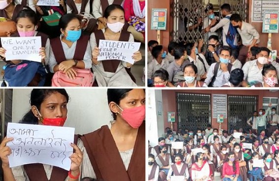 AGARTALA, Aug 23 (TIWN): Last week, the D.EI.ED students had gheraoed the Education Dept over their pending examinations amid the TET examination is also ahead, but as the Dept has been in slumber, the students once again have gheraoed the Dept in protest. Talking to the media, one of the agitating students said, "We have been requesting the Director to conduct our examinations. Either the Det has to take exams online or offline, but a decision should be made. We are in tension and suffering due to uncertainty. On the one hand, we have B.Ed exam tensions and again TET exam is ahead. For what exam, should we get prepared ? It has been two months, our demands are pending. Our session deadline is also ending. As offline exams are not possible and all students who are studying in other states' colleges have completed their exams in online mode, so we want our exams to also be completed soon in online mode".