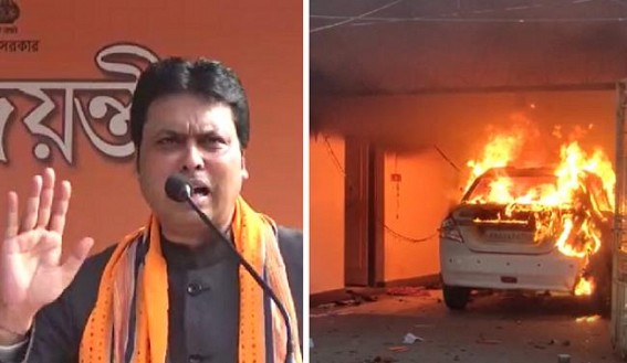 AGARTALA, Sep 8 (TIWN): 2 media houses - Pratibadi Kalam, Daily Desher Katha and two CPI-M party offices including party headquarter were set on fire, stone pelted by BJP kariyakartas with "Jai Sree Ram", "Bharat Mata ki Joy" slogans.
