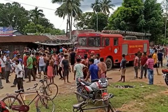AGARTALA, Sep 14 (TIWN): Three shops were completely burnt to ashes at Golaghati area on Tuesday. The amount of damage Will be more than lakhs. Outraged people detained fire engines demanding the establishment of a fire department office as fire brigade delayed reaching on the spot.