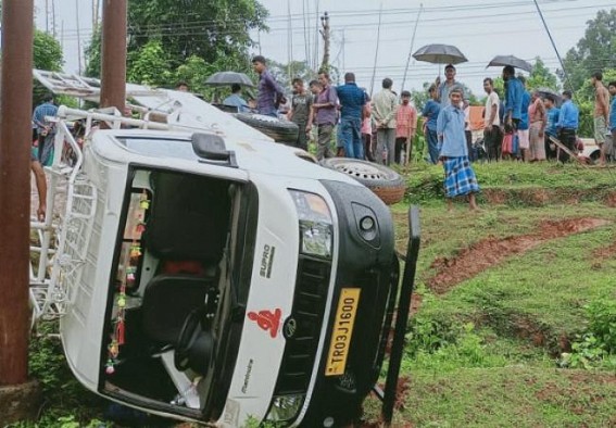 AGARTALA, Sep 19 (TIWN): People of Bishramganj Chechuri Mai area blocked roads in front of the main gate of the District Police superintendent's office in Bishramganj demanding repair of the road. They claimed after light rain the road became very slippery that the road became very slippery and almost every day minimum 4-5 accidents happen in this road.