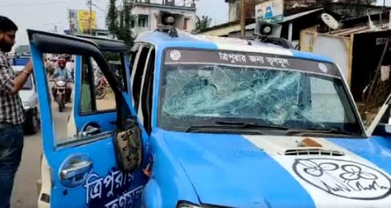 AGARTALA, Oct 22 (TIWN): Within a few hours of inauguration of the new vehicle, which TMC launched for its political campaigning ahead of Municipal Poll, BJP goons allegedly attacked it and vandalized it. TMC in a social media update informed that many people were injured in this incident. Today, Tripura Trinamool Congress has launched its drive to win the 2023 poll and kickstart for the upcoming Municipal Poll. The vehicle was launched for party propaganda and at the same time slogans were raised with the Mission of “Jitbe Tripura” under “Tripurar Jonyo Trinamool”. TMC convener Subal Bhowmik, leader Sushmita Dev were present during the inauguration programme. While interacting with media, TMC leader Sushmita Dev said, “The journey has started from today and inauguration of the programme has been conducted in Lake Chowmuhani market in Agartala. We will go to each area, each ward, each block with our Vision and talk to the common men”. But, within a few hours of the inauguration, BJP goons allegedly held an attack on TMC and vandalized the car.