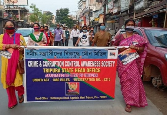 AGARTALA, Oct 24 (TIWN): Over the violent attack on Hindu and vandalism of Hindu Temples in Bangladesh Crime & corruption control society organised a silent protest rally.