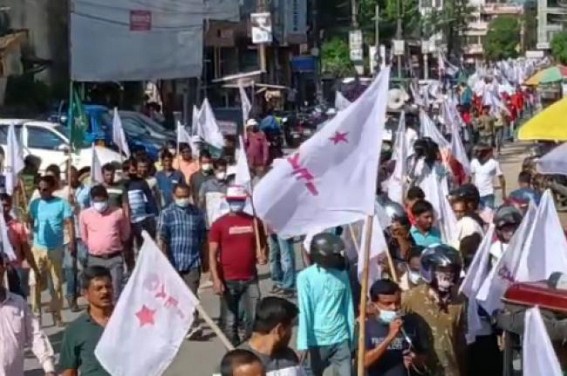 AGARTALA, Nov 17 (TIWN): Amid severe attacks on the opposition parties, Left Front carries strong support from people yet in Tripura, was glimpsed in today’s massive rally in Agartala organized by CPI-M’s youth wings DYFI, TYF.The rally was conducted centering the upcoming Municipal Election.Although anti-Left parties claimed that the Left has lost young supporters, today's rally displayed once again the opposite scenario. The youth leaders of the Left wings raised slogans against the BJP party and its Govt over the unemployment and undemocratic attacks on the opposition.