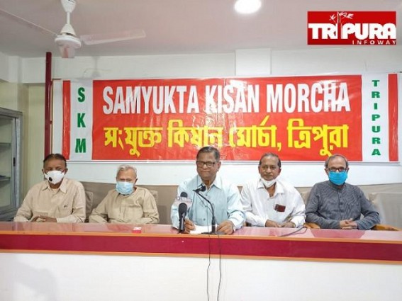 AGARTALA, Nov 19 (TIWN): Welcoming the late decision of the Modi Govt of repealing the farm bills, Samukta Kisan Morcha has demanded compensation to the farmers’ families immediately who lost their lives in the fight of farmers rights and in their continuous struggle to force the Govt to withdraw decisions over 3 farm laws. Addressing the media, leader Pabitra Kar said, Samyukta Kisan Morcha has been with the farmers since the beginning and our protest will be continuing until the Govt withdraws the bill practically. “The PM has begged mercy from the nation but the farmers who died must not be forgotten. They are inseparable parts of the movement. We demand that the Govt should take care of the families. We have initially helped the families but it’s now the responsibility of the Govt”.