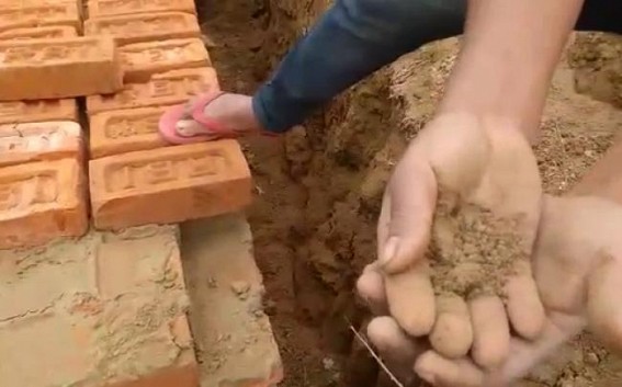 PHOTO : Locals alleged low-quality Road Construction work in Kakrachara ADC Village. TIWN Pic Dec 7, 2021