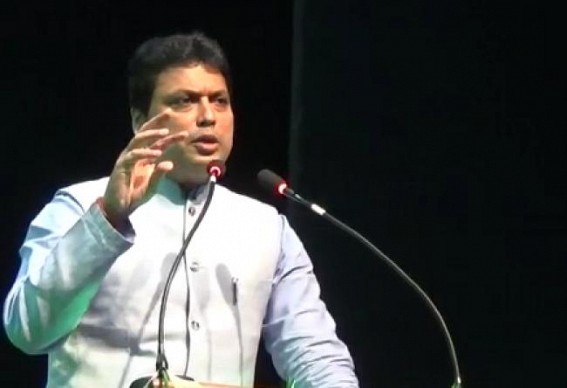 PHOTO : CM Biplab Deb addressing in Agartala Town Hall. TIWN Pic Dec 19, 2021