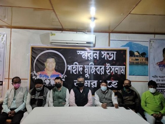 AGARTALA, Jan 10 (TIWN): TMC leader Mujibur Islam Majumdar who died on 5th Jan after brutal attack by BJP bike gang goons on 28th August. Today a remembrance meeting of late Mujibur Islam Majumdar was organised by TMC.