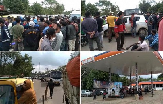 AGARTALA, Feb 5 (TIWN): Auto drivers sat in a blockade in front of CNG station under Bishramganj police station on Agartala Sabroom National Highway. It is learned that on Saturday, auto drivers of Bishalgarh subdivision area blocked the national highway in front of the CNG station. Auto drivers blocked the national highway for about half an hour in front of Bishramganj CNG station. Police of Bishramganj Police Station rushed to the spot after receiving information about the road blockade in front of Bishramganj CNG Station on Agartala Sabrum National Highway. However, after half an hour Agartala Sabrum National Road was closed, other policemen including Bishramganj Police Station OC came to lift the blockade.