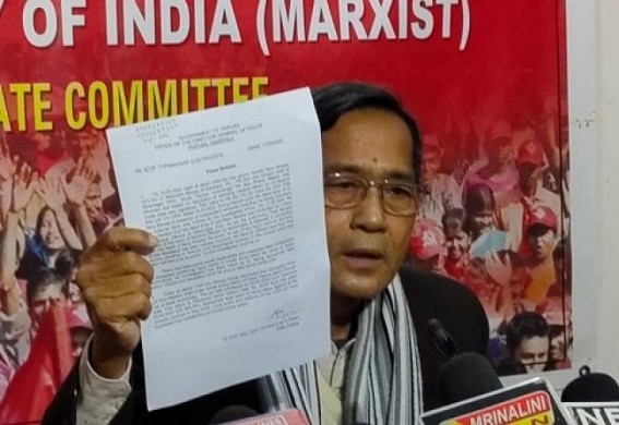 AGARTALA, Feb 12 (TIWN): Expressing shocks over Tripura Police headquarter’s statement declaring that CPI-M party worker was not murdered in Rajnagar, CPI-M Party State Secretary Jitendra Choudhury said, “Such a press release is a criminal offence. Without post mortem’s full report, how can police declare it a normal ? Eyewitnesses and the demand of the locals were ignored”. Today, the CPI-M party also held a protest against the barbaric murder of its party worker in Belonia. MLA Sudhan Das was present during the protest and delivered a speech.A massive rally was organized in Raj Nagar demanding immediate arrest of the culprits. A protest was staged at Chottakhola also.