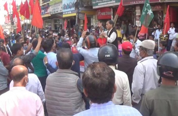 AGARTALA, Feb 15 (TIWN): CPI-M’s wings GMP and SC cell held a massive protest rally in Agartala against the Union Budget 2022 alleging the Budget has nothing for the scheduled tribes, scheduled casts people. Addressing the rally at Agartala City Centre, CPI-M State Secretary Jitendra Chowdhury said, “After so many protests and movements, the then Congress Govt in 70’s era agreed to start SC sub-plan, ST sub-plan but the budget has always been very low. No step was taken to diminish the differences between the deprived people and the mainstream, but still the SC, ST got some reliefs but under Narendra Modi’s BJP the Planning Commission was abolished, and Niti Aayog was introduced. When Planning Commission does not exist, how can sub-plans work for SC, ST ?” “We demand the cancellation of the Budget and restoration of sub-plans for SC, ST. Enact reservation law in job recruitment. We also demand that unutilized funds should not be canceled but should be stored for the next year”, said Jitendra Chowdhury.