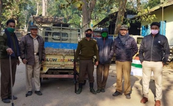 The vehicle was parked in the Naba Shantiganj Bazar area and Forest office personnel searched the vehicle and recovered a large quantity of illegal sand and woods.