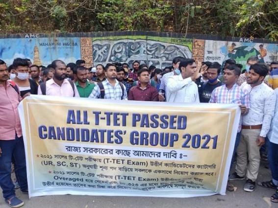 The TET qualified teachers of 2021 exams are forced to sit at home Jobless. Today, seeking recruitment and demanding to ‘Increase Vacant Posts’ the Job aspirants went to Secretariat. They wanted to meet CM Biplab Deb and to place a deputation raising this issue ‘Peacefully’. But the TET qualified unemployed youths were detained by Tripura Police citing traffic movement disruption whereas the TET Qualified teachers only just assembled beside the road, and did not blocked road.