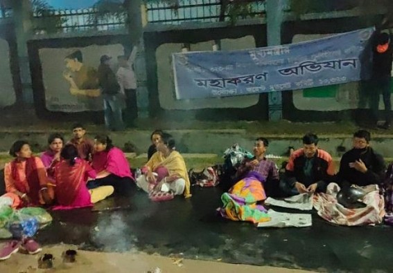 AGARTALA, March 15 (TIWN): Terminated 10323 teachers who gathered to meet CM Biplab Deb on Monday, could not meet the CM yet. Police’s lathi-charge and arrests of over 300 terminated teachers led some of the terminated teachers under ‘Joint Movement Committee’ to continue demonstration the whole night at Circuit House. But at around night 12 O’Clock, some miscreants in intoxicated condition allegedly had attacked the 10323 teachers. Then a set of bike gangs allegedly raised the ‘Bharat Mata Ki Joy’ slogan and continued to harass the agitators who were waiting for 14 hours to meet the CM.