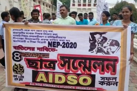 AGARTALA, May 28 (TIWN): AIDSO held a protest against NEP- 2020 as its anti-people and anti-Education Policy. To raise voice against it All India Committee has called for a 1 crore signature Campaign from 1st May to 28th September and against the Policy the AIDSO country-wide collecting public’s support. An AIDSO leader claimed that they are getting huge public support to success the campaign NEP- 2020.