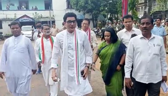 AGARTALA, June 20 (TIWN): Congress on Monday had gheraoed East Agartala Police station demanding arrest of Minister Sushanta Chowdhury immediately. The demand was raised after Sushanta Chowdhury along with his goons attacked Sudip Roy Barman at Abhoy Nagar after Barman reached there to save his party worker’s family. Reportedly, around 50 BJP goons held an attack at Congress member Pritviraj Goswami’s house. The goons attacked Pritviraj’s father Alok Ranjan Goswami. Getting information, Sudip Roy Barman rushed to the spot and then the goons attacked him too.