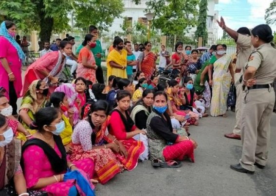 AGARTALA, July 16 (TIWN): CM Manik Saha’s Vehicle had to change its regular route to Secretariat on Saturday as students’ parents of Umakanta Bengali Medium school had blocked the road in protest against a teacher’s transfer. According to the agitating guardians, the Umakanta Bengali Medium school has only 9 teachers and at least more than 9 teachers are needed to cover up the gap. Guardians said often two classes are bound to be clubbed due to a shortage of teachers. In this condition the most active teacher Jhalak Dey’s transfer who was controlling the system inside the school amid the crisis is unacceptable.