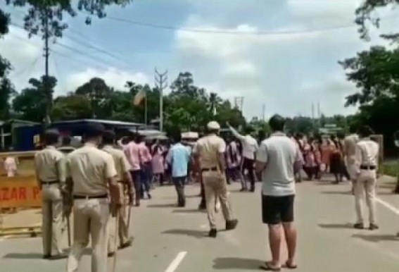 MANU, July 21 (TIWN): Students' Protest demanding teachers have become common in Tripura over the past few days. Students of Bhurtali H/S School held protest movement in front of Satchand block, Manu against teacher crisis and amid its teacher’s transfer and various infrastructural crisis.