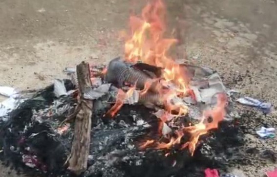Even though 72 hours have already passed since the complaint was filed, the police have not yet arrested the accused Roshan Uddin. Resulting, the villagers started protest against the role of police by burning tyres.