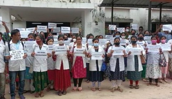 AGARTALA, Aug 10 (TIWN): Over 5000 nurses are jobless in Tripura. The MPW passed out unemployed youths gathered today at Gorkhabasti, Health Director’s office demanding immediate recruitment. The job aspirants disclosed that in last 4.5 years of the BJP Govt, not a single MPW was recruited. Rather the ongoing recruitment of the Left era of 2017 which was to recruit 791 MPWs was cancelled by this Govt after it assumed power. Talking to media, the agitators said, “We are repeatedly meeting the Director and we are told that massive vacancies are there but there is no attempt to fill up the posts. It is more than 4 years that we had passed outs”.