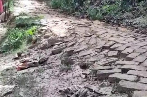 AGARTALA, Aug 25 (TIWN): The brick soling road of Khamartila in Lakshmi Narayanpur village under Khowai was not renovated. As a result the villagers expressed huge angst against the MLA, Prashanta Debbarma. It is known that Prashanta Debbarma, MLA of that area had promised the villagers that he would repair the broken brick-soled road once the government came to power. But 4.5 years crossed of BJP era but the MLA has not taken any initiative to renovate the broken road.