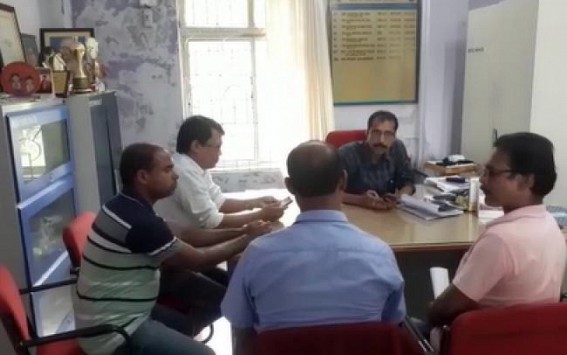 BELONIA, Aug 25 (TIWN): 10323 teachers gathered in front of the District Education Office of the South District of Bilonia Mirzapur, raising the demand that they should either give a termination letter or they should be allowed to join schools. This protest was a part of statewide protest against the alleged illegal termination of the teachers. 10323 teachers came to the office of the South District Deputy Education Officer today to discuss about their demands and rights with the Education Officer. They said they want to resume work in their respective places showing the RTI copies in hand to the South District Education Officer.