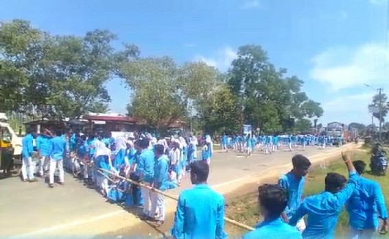 AGARTALA, Sep 9 (TIWN): Heavy teachers’ crisis continues across Tripura schools. In protest against teachers’ shortages, students of Bilthai H.S. School have blocked National Highway in Panisgagar on Friday. Such protests have turned into daily incidents in Tripura as various schools’ students are organizing protests with the same issue that is teachers’ crisis. Talking to students, one of the agitating students said, “We are already suffering heavily due to teachers’ crisis but instead of giving us more numbers of teachers, teachers are being transferred. Now our chemistry teacher Amitabha Sir has been transferred. We will not tolerate this. We demand withdrawal of his transfer order immediately”.
